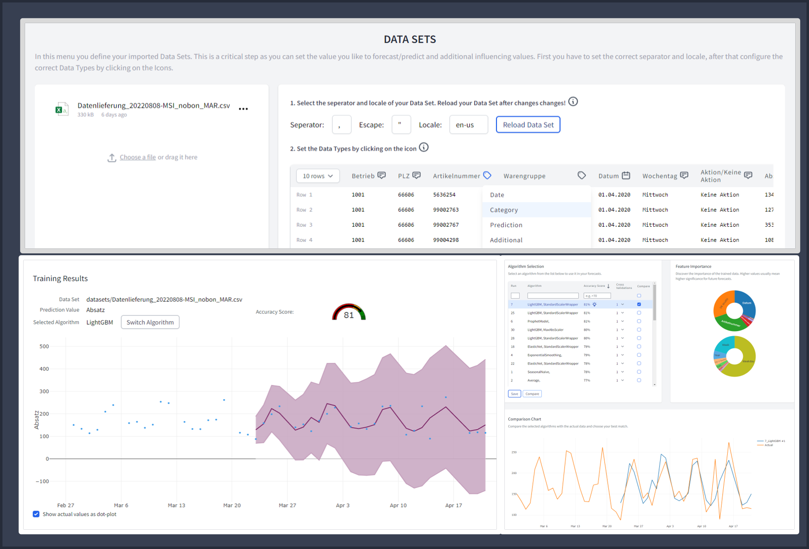 Unsere Al.S² Demand Forecasting Lösung (Microsoft Azure Marketplace) ermöglicht präzise Bedarfs- und Absatzprognosen mit Hilfe von Künstlicher Intelligenz (KI) und maschinellem Lernen. Unsere Lösung führt zu einer effizienteren Produktionsplanung, zu Kosteneinsparungen und zur Optimierung der gesamten Wertschöpfungskette, während gleichzeitig Aufgaben automatisiert werden, für die noch vor wenigen Jahren erfahrene Data Scientists erforderlich waren.