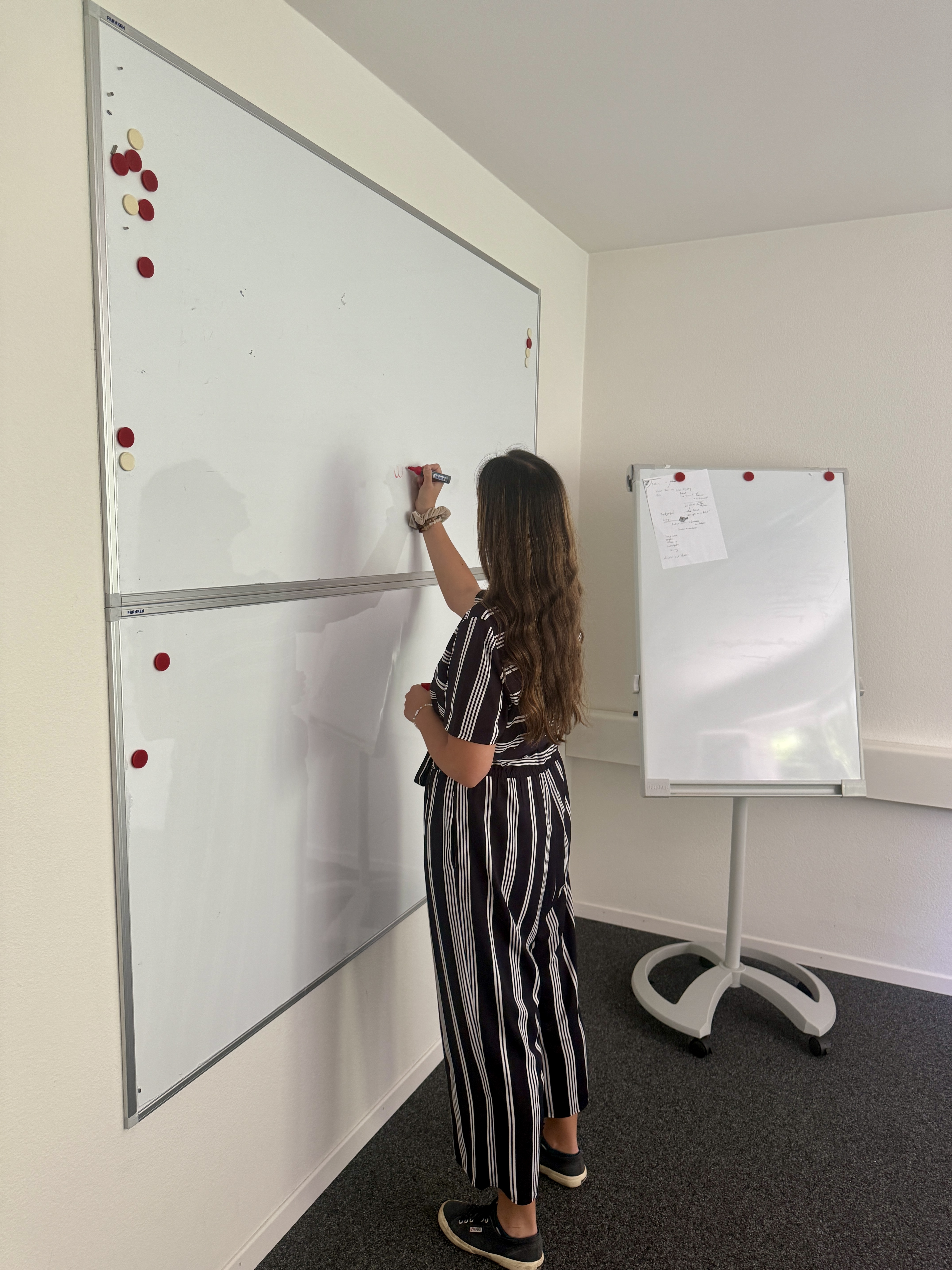 Moderne Ausstattung: Whiteboard und mobile Präsentationstafel für kreative Meetings.