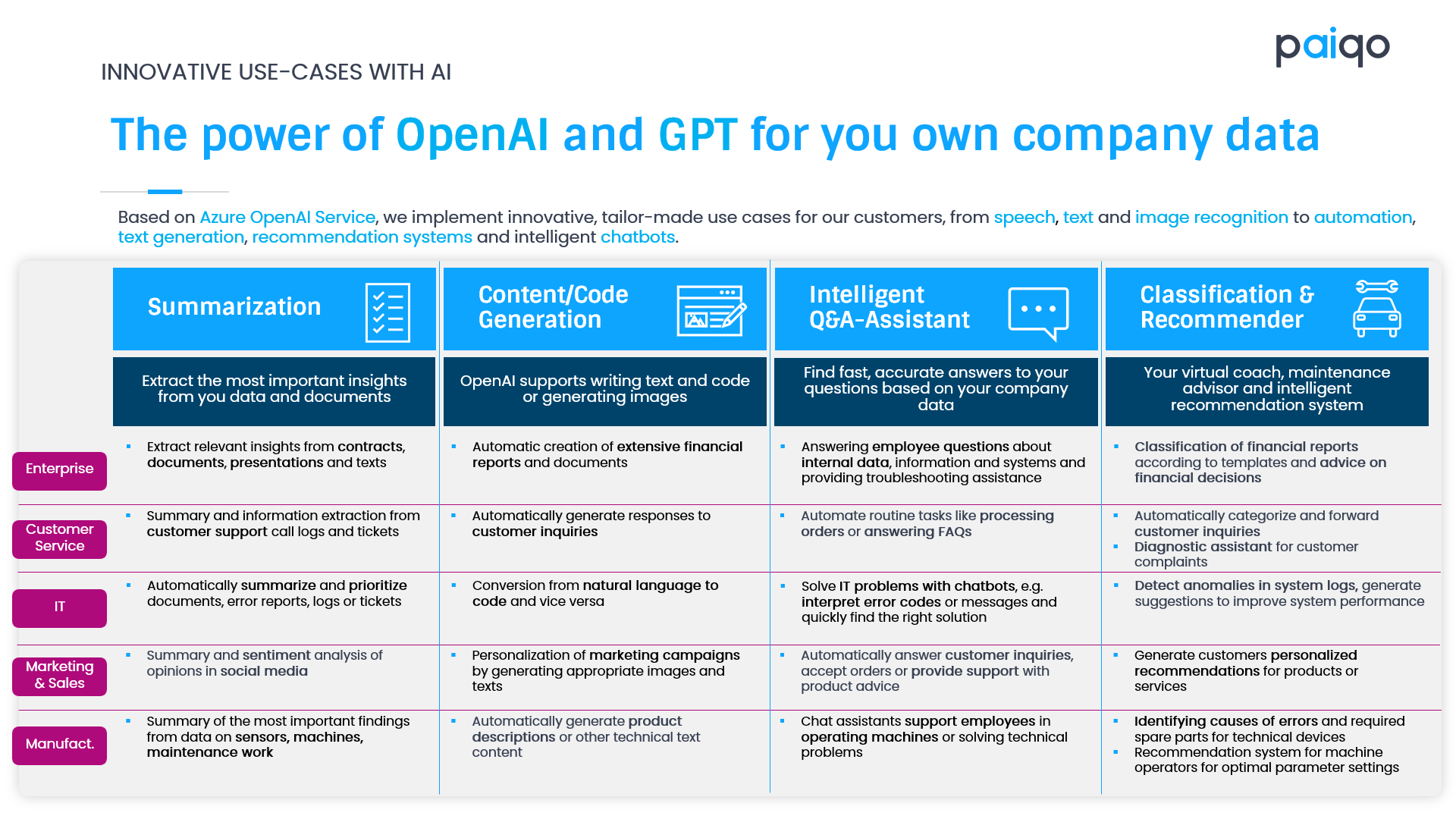 paiqo: KI- & Datenplattform-Lösungen. Effizienz durch GenAI, ML & Data Science für Manufacturing, Retail, FSI & Energy.